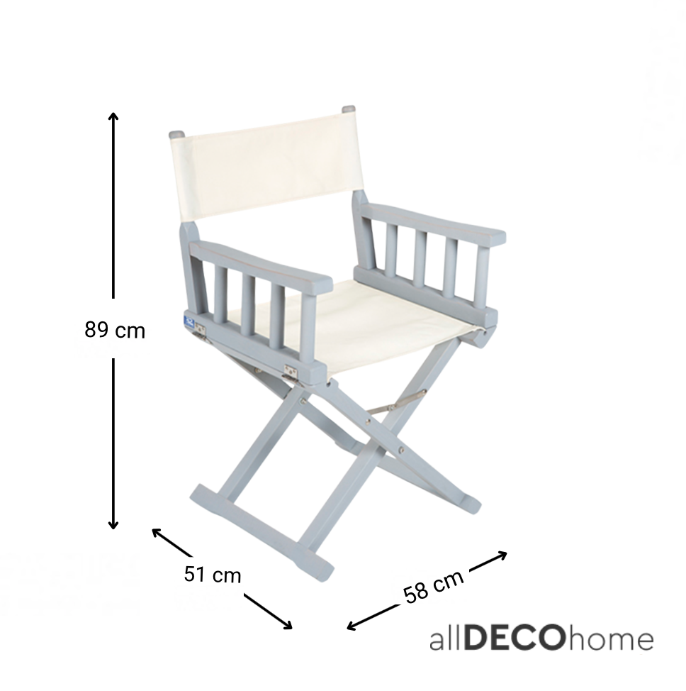• The frame of the director chair is completely 'finished' (rubbed).