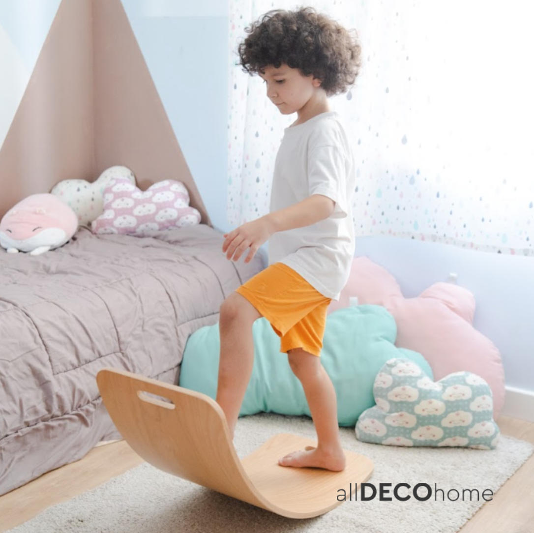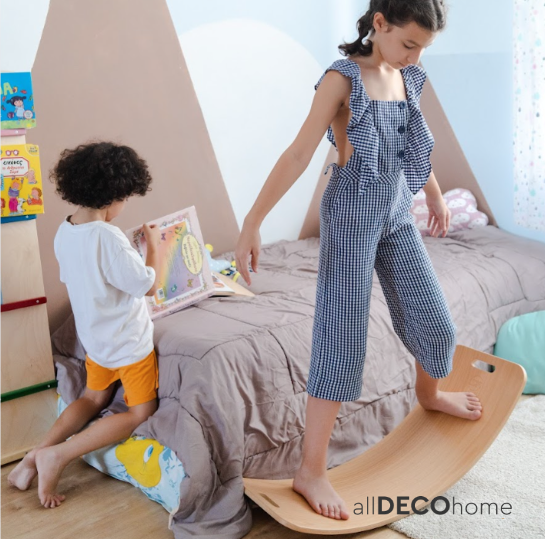 The Balance Board is a fun toy that also works as a fitness piece of furniture! As a game of developing motor and muscular skills, it enables the child to learn to balance, exercise and release energy. Children also use it as a bridge, slide, platform for toys, swing etc. There are many other uses for it, for example it becomes a computer or work desk. The balance board can also be used by moms as it is recommended by physiotherapists worldwide. Also, many pediatricians and pediatric orthopedists around the world recommend the use of the balance board not only as the best way of training and muscle strengthening of the legs, but also as one of the best ways to cure diseases such as clubfoot or clubfoot! According to studies, it strengthens the torso, improves posture, and works preventively on issues related to the legs. Use it for the playroom or family room. You will love the occasion for movement and fun that inspires as well as its versatile use.