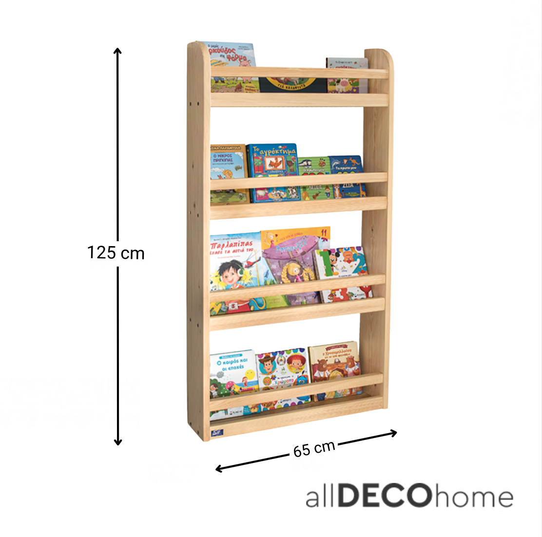 The Bookcase made according to the principles of the Montessori method is one of the must furniture in the children's room! Eco-friendly production and sleek, compact design make the library ideal for transporting Montessori methods to your home. The four levels of the bookcase hold all the books in place, while at the same time making the content visible and easily accessible at all times by children and toddlers. The design is made so that books of different sizes are placed and the child's attention is not distracted from the books. Its small size makes it easy to place in the children's room and anywhere in the house. Make books your child's number one activity! The placement of the books, the easy approach as well as the visual contact encourage the children to choose a book from the collection and to read. Especially for young children - who have not learned to read - the motivation is the colors and images they see, so they are encouraged to explore the "magic" world of words and letters from an early age. The purpose of the Montessori method is for children in each field to be autonomous and independent. The library is ideal for collecting home books, for homeschooling or for the infant and school class.